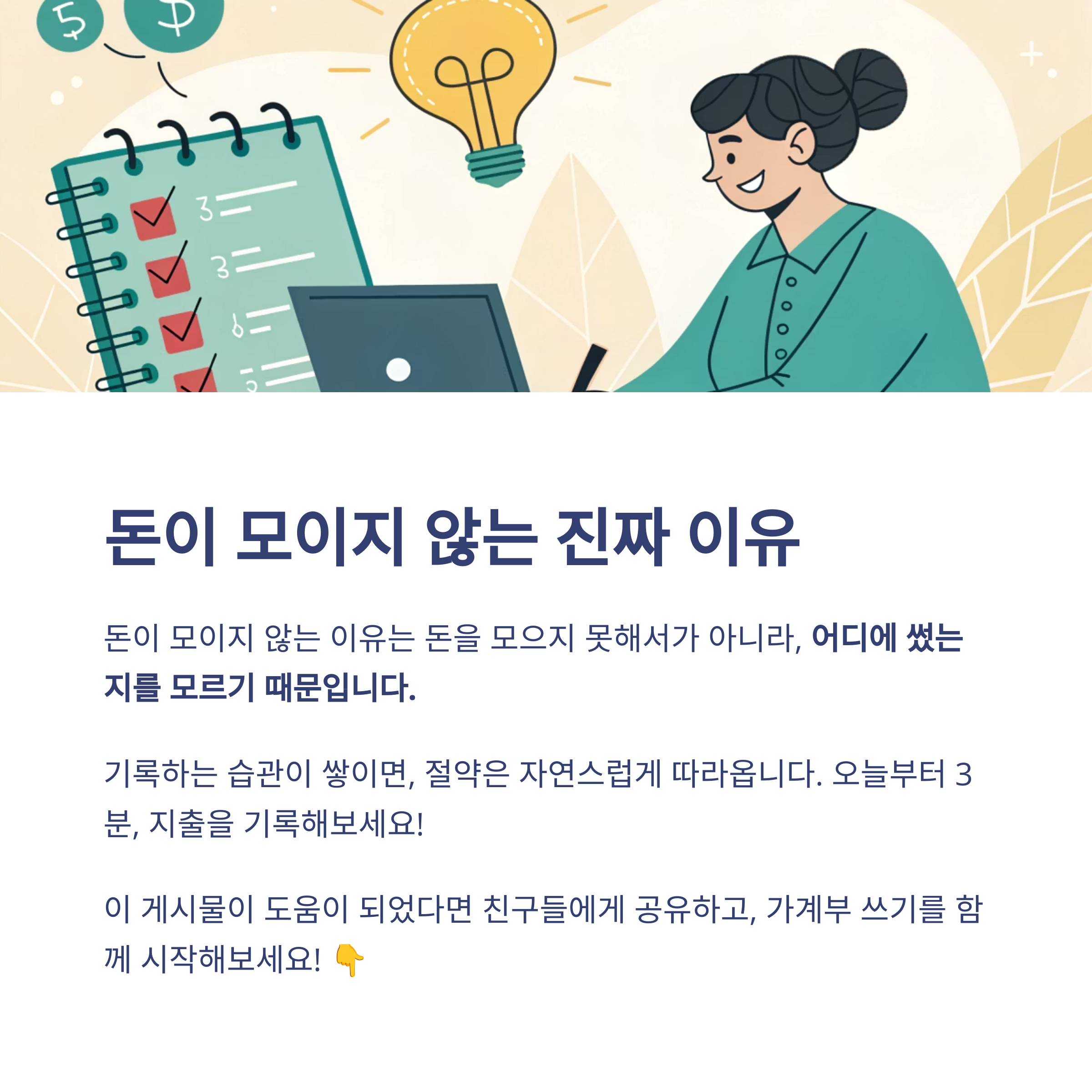 기록하는 습관이 쌓이면, 절약은 자연스럽게 따라옵니다.