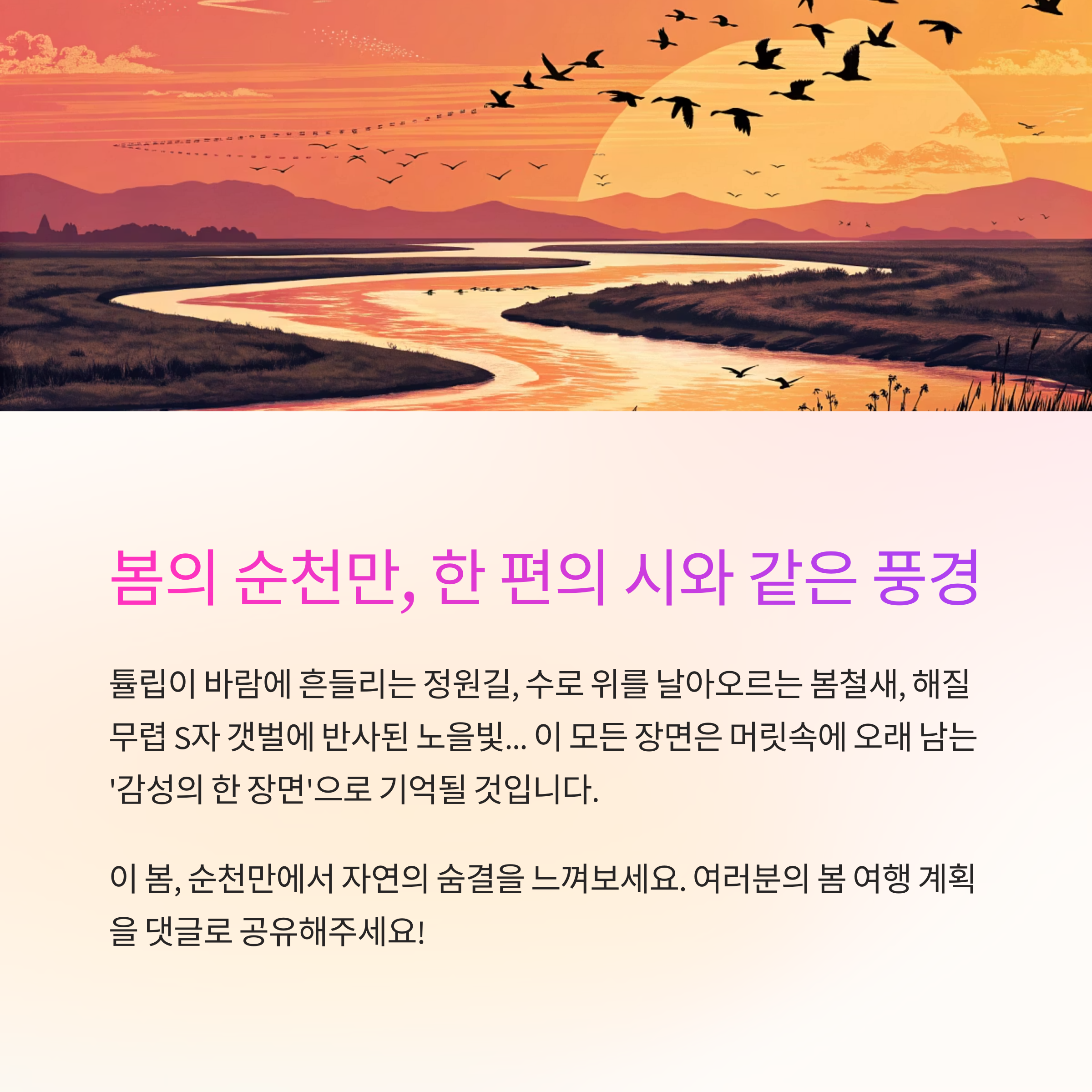 이 글에서는 봄철에 가장 잘 어울리는 순천만 생태 여행 코스를 소개합니다.