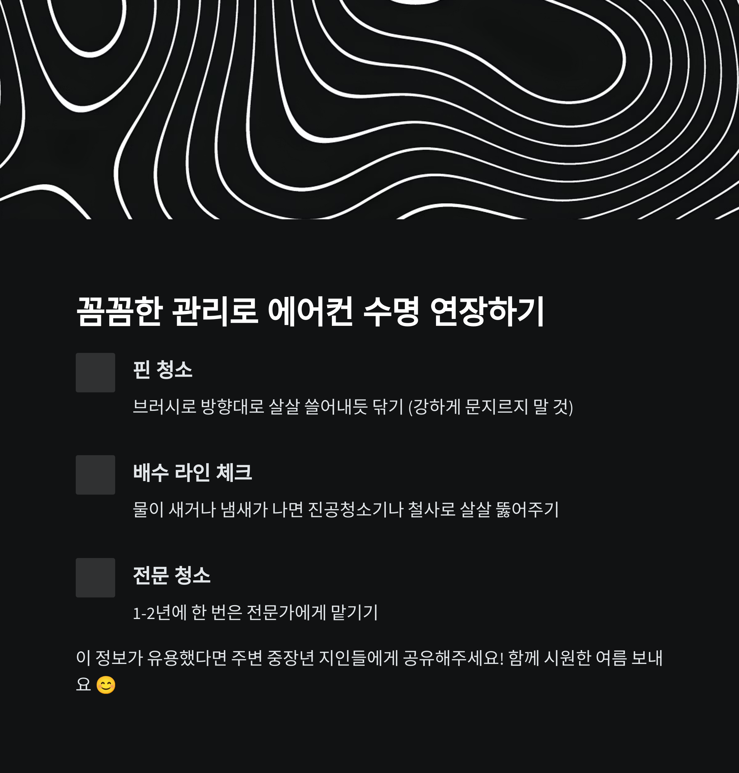 - 에어컨 전원은 항상 청소 전 꺼둘 것!
