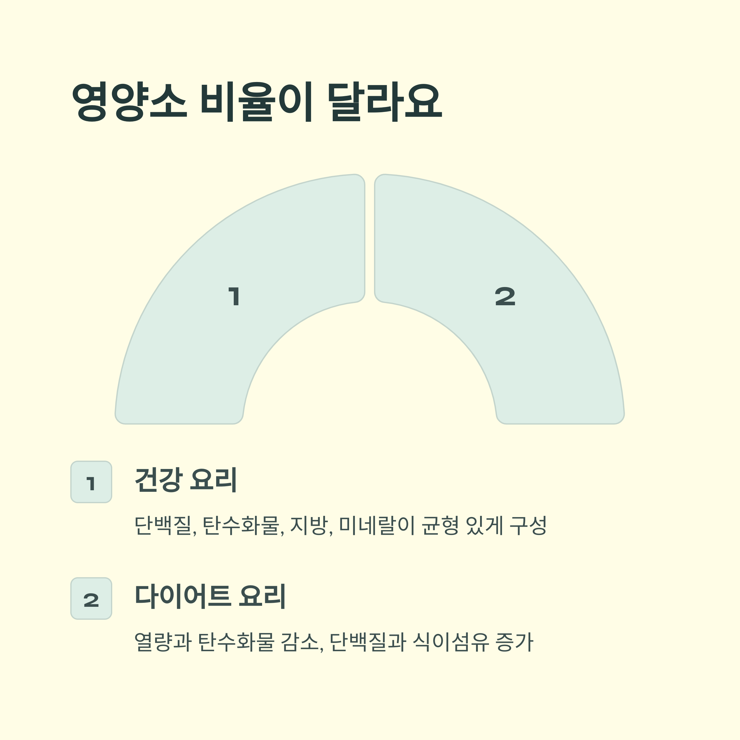 반면 다이어트 요리는 열량과 탄수화물을 최대한 줄이고 단백질과 식이섬유를 늘리는 방식입니다.