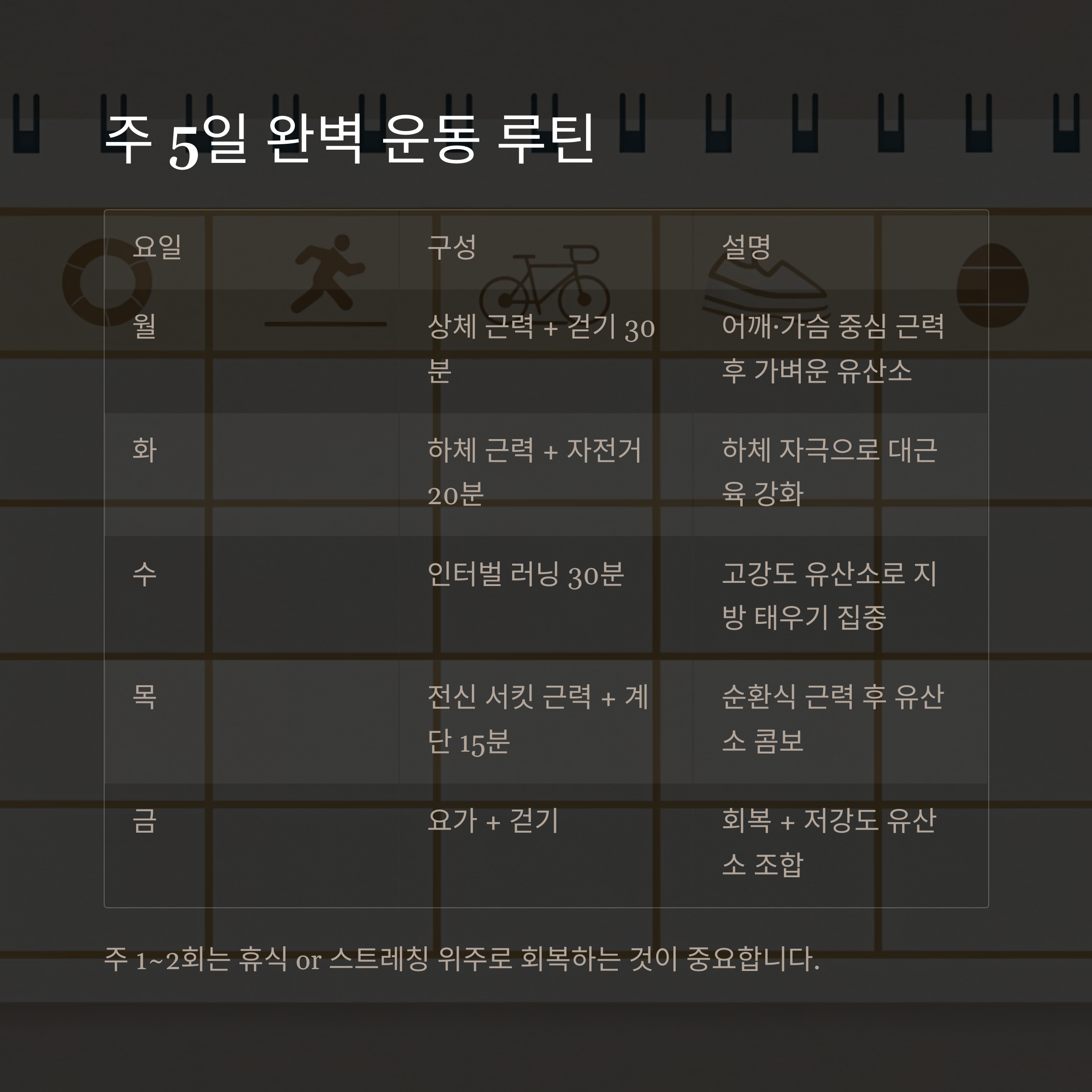 주 5일 루틴 예시: 유산소와 근력 병행 구성