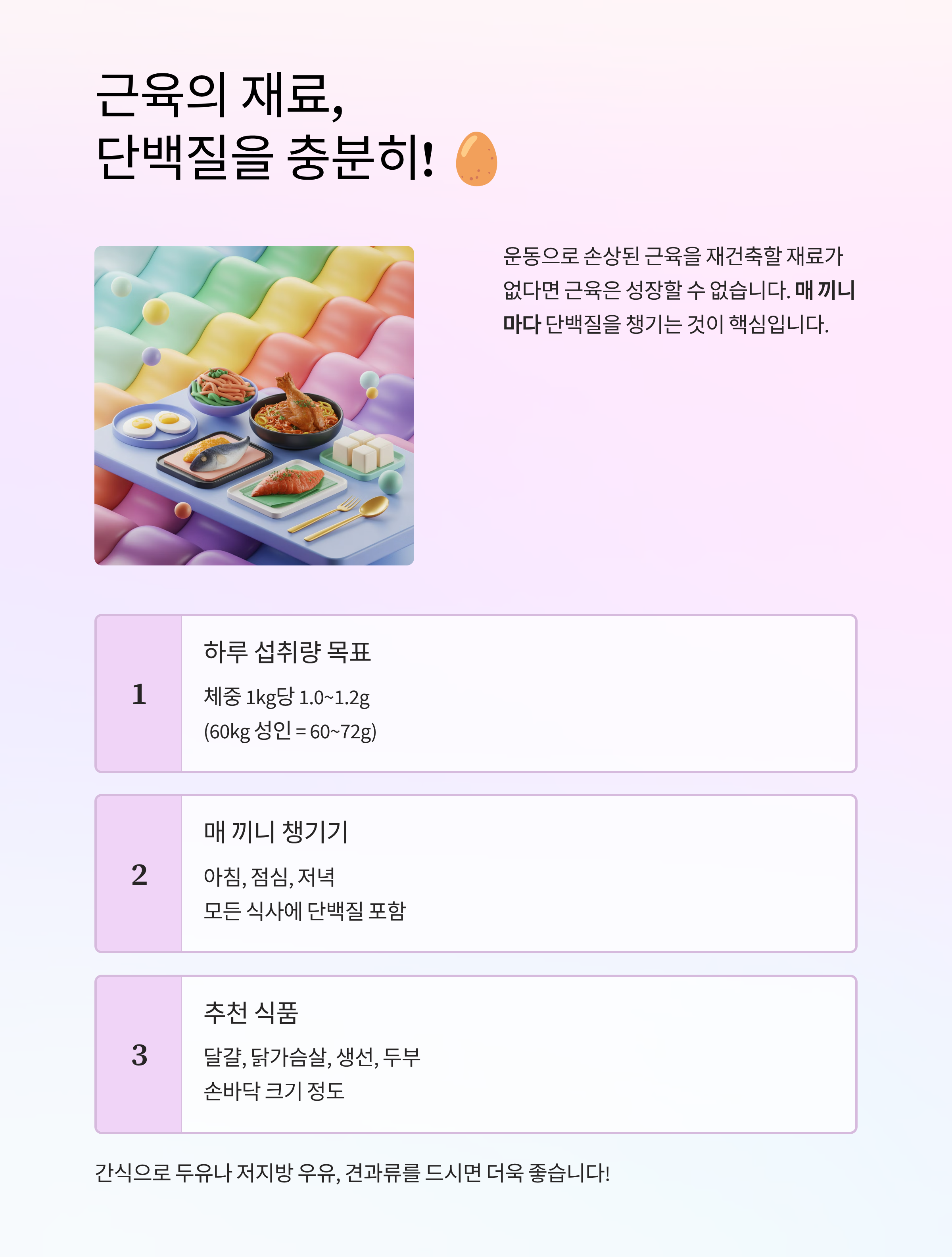 🥚 2. 근육의 재료, 단백질을 충분히 드세요! (매 끼니 체크)