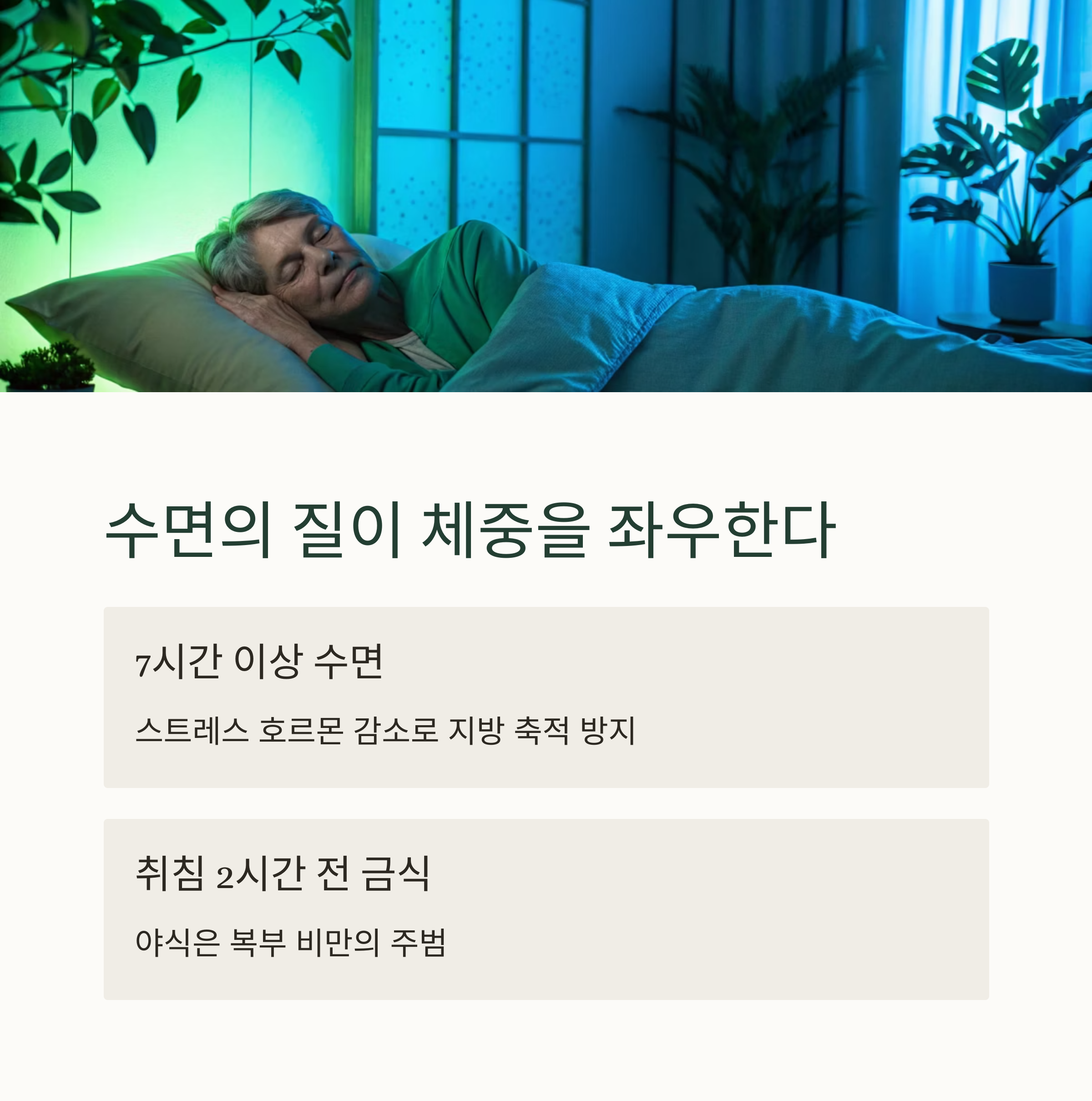 "늦은 야식은 복부 비만의 주범입니다. 일찍 자고 공복 상태로 자는 것이 핵심입니다"