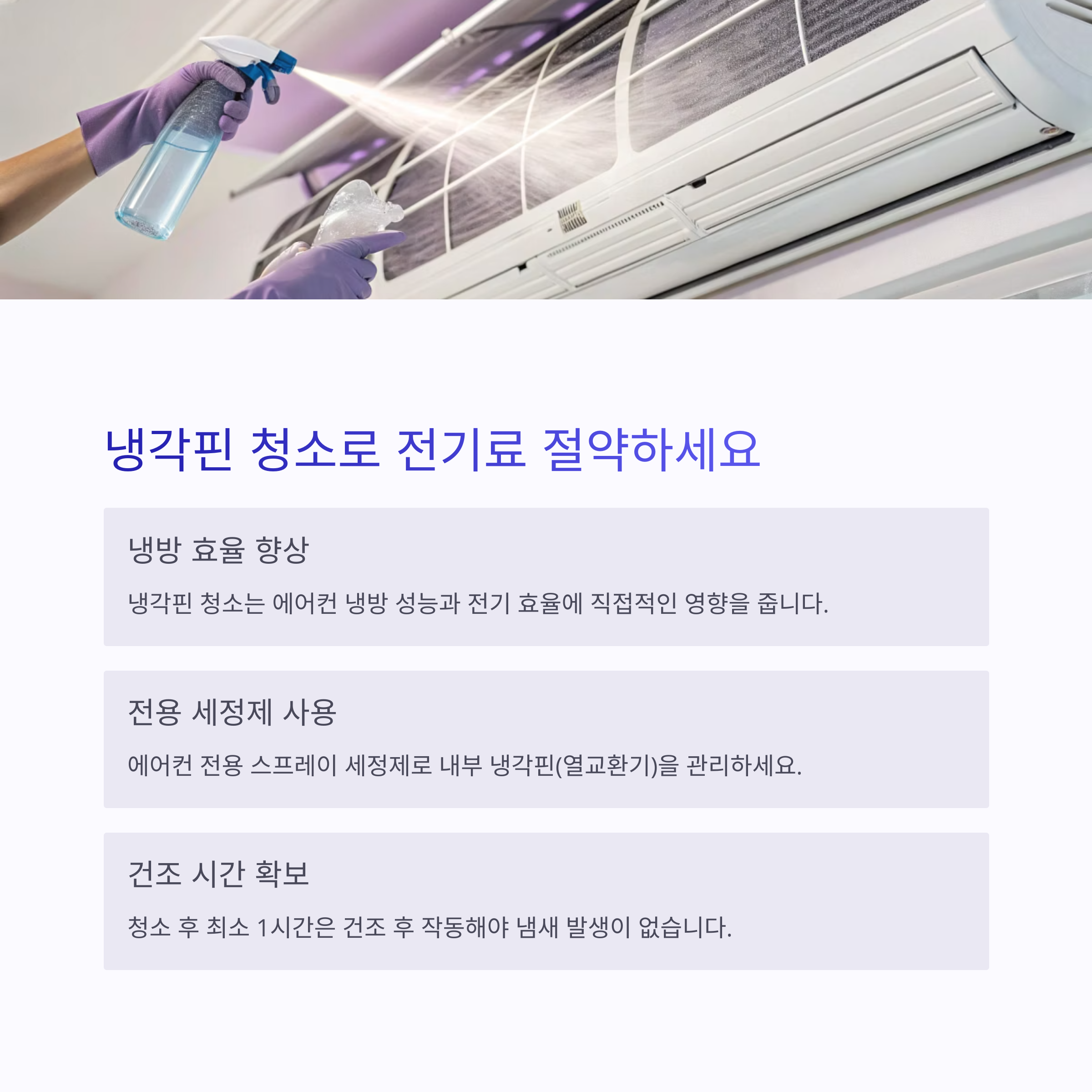 내부 냉각핀 청소는 계절마다 1회는 필수