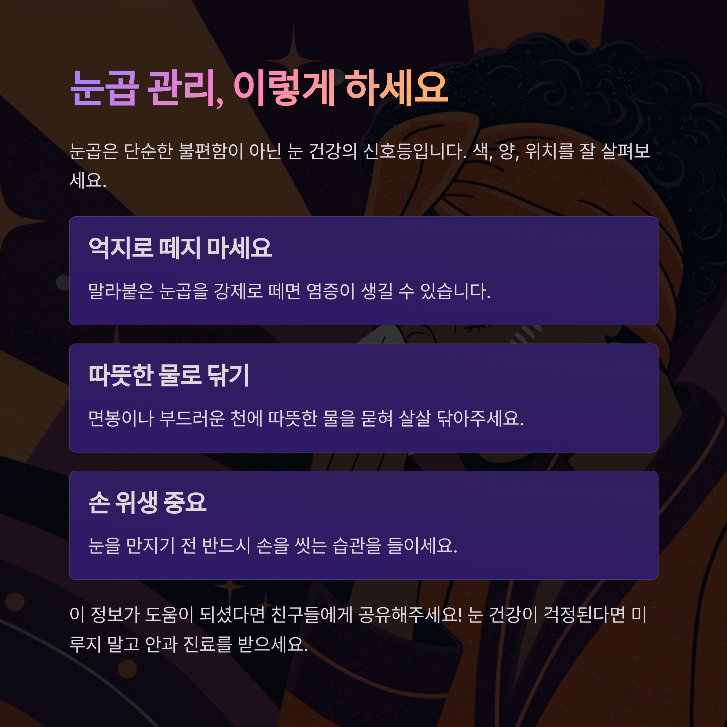 눈곱은 단순한 불편함이 아니라 눈 건강의 신호등이 될 수 있습니다.