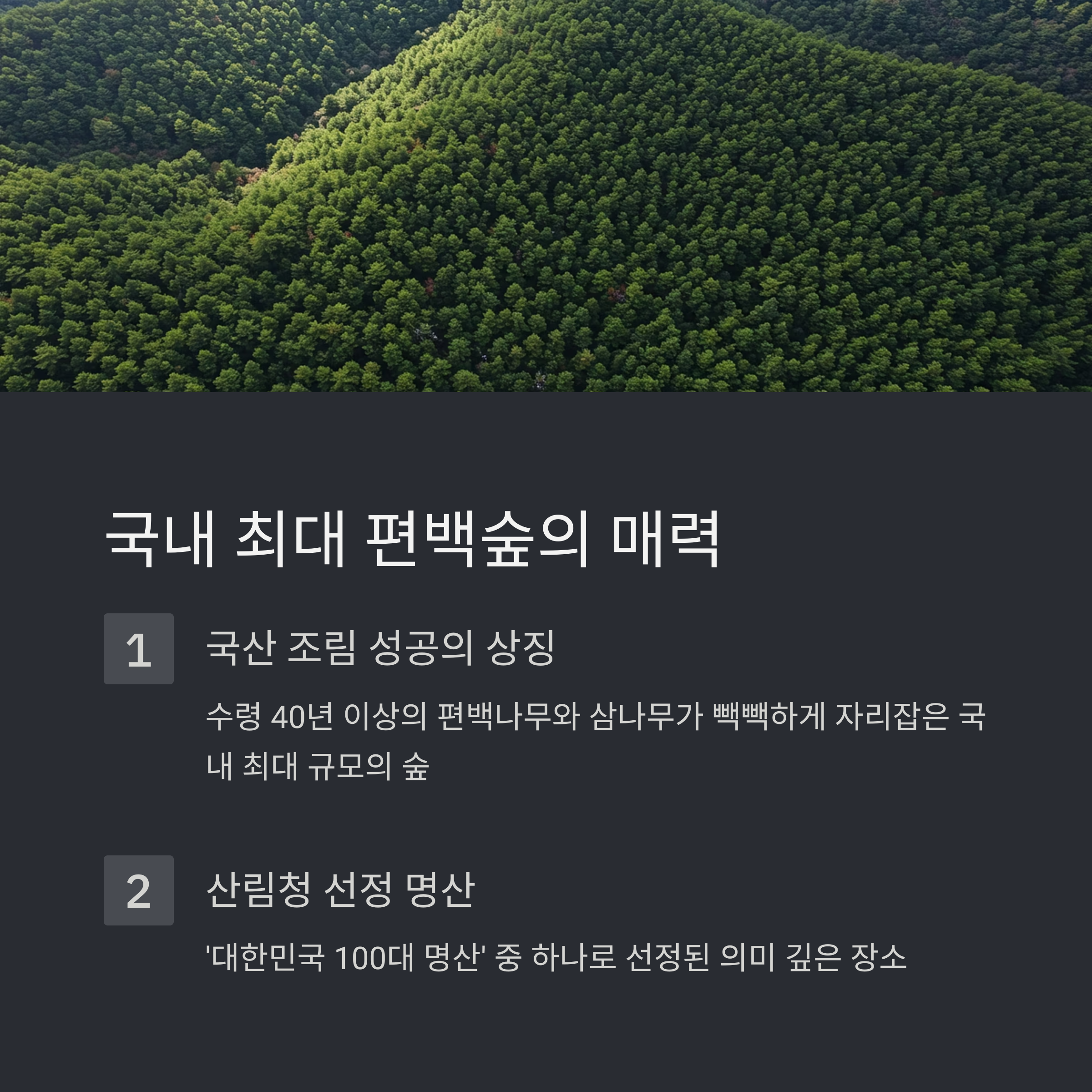 🌲 축령산의 편백나무는 국산 조림 성공의 상징이자,